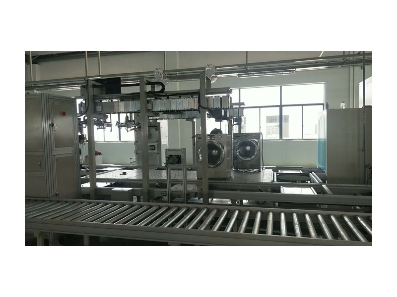 上海博諾自主研發(fā)的節(jié)拍式功能檢測(cè),型式節(jié)拍式運(yùn)行,洗衣機(jī)運(yùn)行至檢測(cè)站,人工插拔進(jìn)水閥、排水管、供電插座,檢測(cè)站根據(jù)時(shí)間要求分好幾個(gè)工位,有測(cè)轉(zhuǎn)速工位、進(jìn)水工位、測(cè)電流工位、排水工位等等,檢測(cè)臺(tái)位自動(dòng)運(yùn)行對(duì)滾筒洗衣機(jī)各項(xiàng)功能進(jìn)行跟蹤檢測(cè)。
